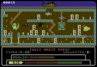 Называется она Exploding Fish и является классической аркадой, в которой, управляя аквалангистом Дугалом, нужно аккуратно проплывать сквозь рифы, избегать столкновений с морскими обитателями и обезвреживать бомбы, заложенные злобным доктором Драксом.