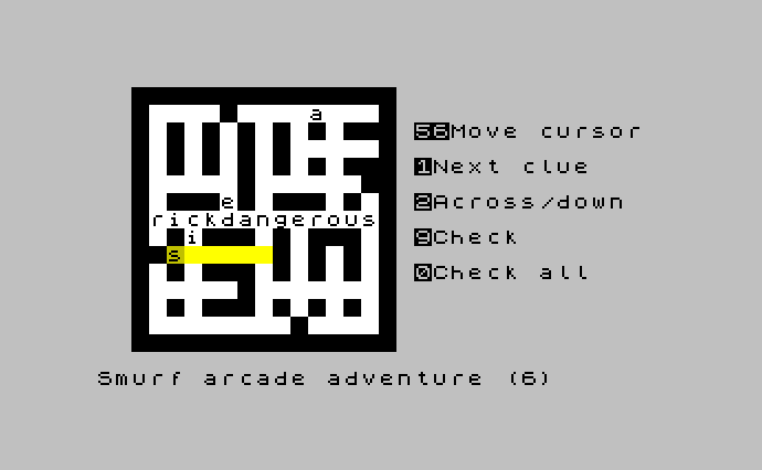 Да, это самый натуральный кроссворд, причём на спектрумовско-игровую тематику. Написан на Бейсике, но в данном случае важна не скорость работы, а вопросы, которые довольно сложны — автор утверждает, что ему пришлось как следует изучить кучу не самых известных игр для ZX Spectrum.