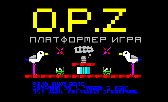 В честь 36-летия всемирно известного компьютера ZX Spectrum (оно было 23 апреля) небезызвестный Дэйв Хьюз сделал маленький, но неплохой и довольно сложный платформер OPZ, причём сразу на двух языках — английском и русском!