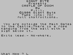 Продолжаются раскопки старых игр для ZX Spectrum. К примеру, некто impomatic с форума World of Spectrum нашёл старенький текстовый квест Castle of Doom, который выходил ещё и на Dragon 32/64.