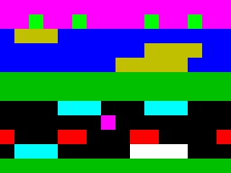 Игра остроумно называется FRO и это действительно натуральный клон Frogger, только с атрибутами вместо спрайтов. Играется она при этом вполне нормально — с десятой попытки её даже можно пройти (мешает лишь наличие всего одной жизни).