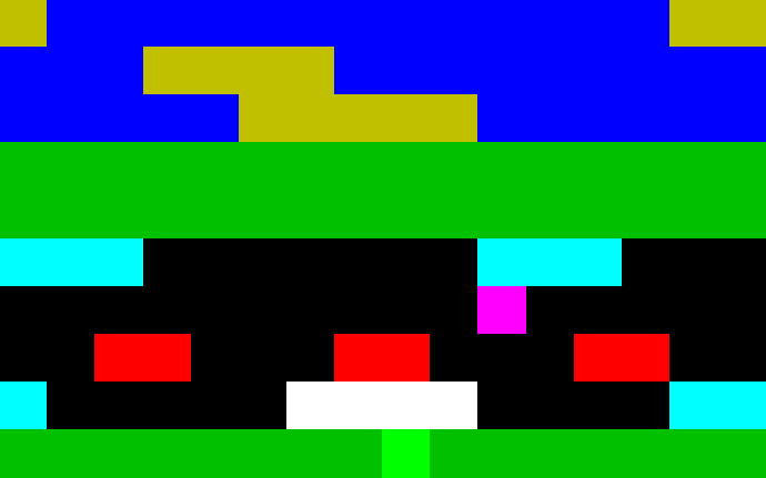 Кажется, самый минималистичный на свете (менее 500 байт) вариант «Фроггера» был создан польским программистом с ником dox для конкурса на прошедшем недавно эвенте speccy.pl party 2018.1.