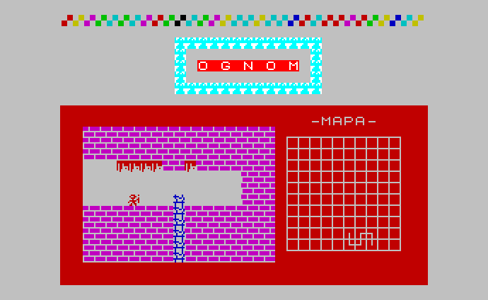 Авторство оригинала принадлежит Х. Луису Вильябе, а на родной португальский игру перевёл и опубликовал Энрике Оливейра. Да, английского языка в Ognom нет, но это не очень мешает, потому что игра очень простая — сначала нужно найти ключ, случайным образом спрятанный в лабиринте, затем подняться на самый верх, открыть комнату с бомбой и вернуться к самому старту. По пути главного героя будут поджидать враги, встреча с которыми сулит моментальную смерть, так что придётся запоминать их расположение или пользоваться вот этой картой.